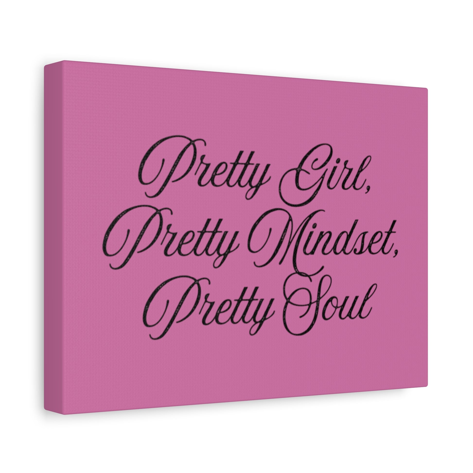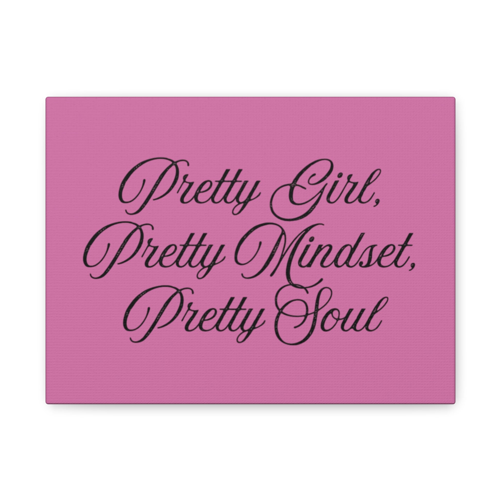 Enhance your space with this stunning matte canvas print that resonates with positivity and charm. Featuring the inspiring quote, “Pretty Girl, Pretty Mindset, Pretty Soul,” this canvas adds a touch of motivation to any room. Perfect for a bedroom, office, or living area, it creates an uplifting atmosphere that encourages self-love and confidence. Ideal for anyone seeking to beautify their environment, this piece makes a thoughtful gift for friends, family, or even yourself! It’s perfect for celebrations like birthdays, graduations, or just because, and is sure to brighten up any occasion with its heartfelt message.