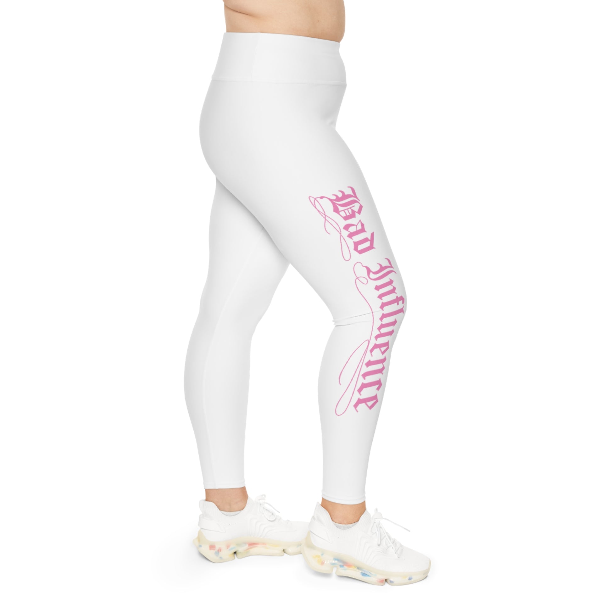 Comfortable Bad Influence sweat pants in old English design for plus size individuals, perfect for leisure or activewear. Gives off a laid-back and rebellious vibe, ideal for those looking to make a statement. Relevant for casual wear, lounging at home, streetwear fashion, and themed parties.